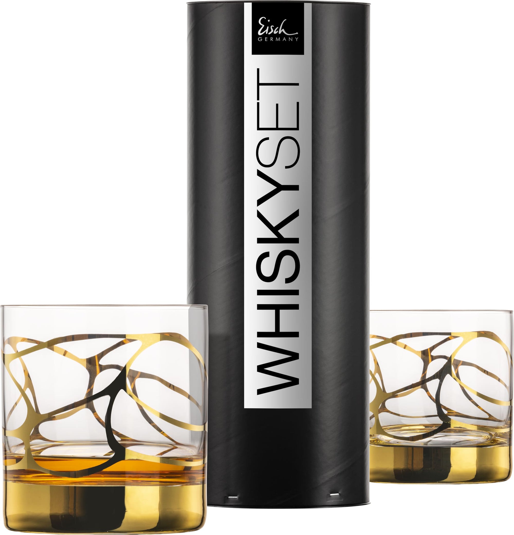 Tag dine whisky øjeblikke til nye højder med dette gyldne STARGATE Whiskyglas fra Eisch. Det eksklusive whiskyglas er fremstillet af strålende blyfri krystal og er omfavnet af et net af 24-karats guld, der omhyggeligt er påført i hånden. Denne fine gyldne dekoration får whiskyens dybe, varme farve til at skille sig ud, og hver tår bliver en sand fornøjelse. Disse glas er både en fryd for øjet og dine læber – de skal opleves!
